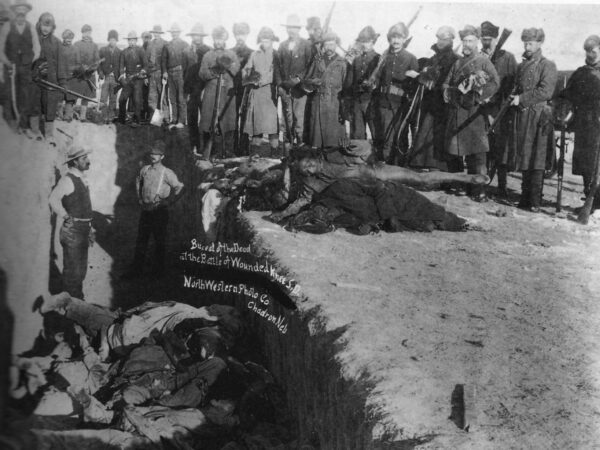 Mehr als 300 Minneconju-Lakota wurden am 29. Dezember 1890 vom US-Militär im Pine Ridge-Reservat am Wounded Knee massakriert. Bezeichnenderweise beschreibt Hegseth dieses Massaker als Schlacht von Wounded Knee. Zu den Abgeschlachteten zählten Frauen, Kinder und ältere Menschen.